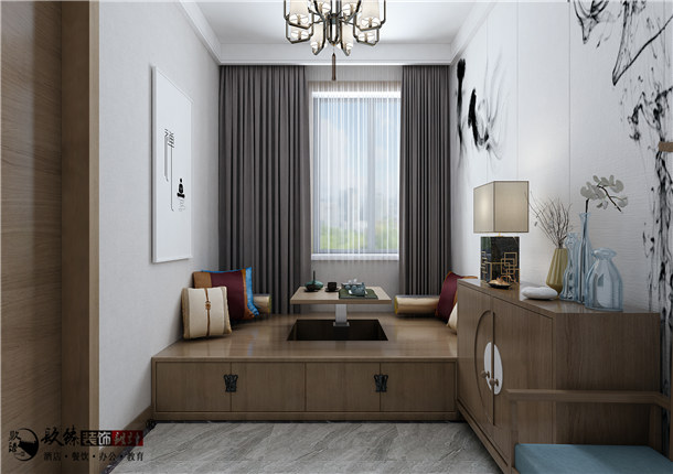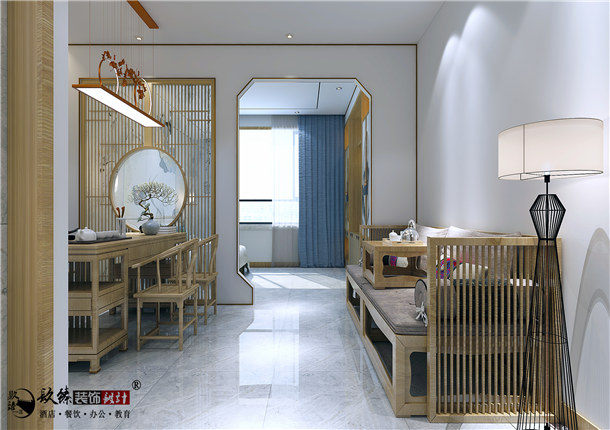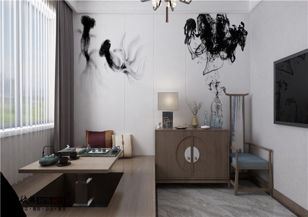 相较于中式风格,现代中式办公室装修等工装要自由很多,在以传统文化为基础的设计理念中,完全可以尽情地吸收现代元素,装饰成以现代主流时尚气息为主的古今结合、为我所用、融会贯通、协调统一的办公室风貌,在办公室装修装饰空间时尚元素、时尚气息的主导下,只饰以中式风格的办公家具,就会洋溢着古朴的气息,使办公室既古色古香,又现代时尚。合而为之的是朝气蓬勃的浓厚氛围。现代中式的办公室装修设计越来越受一些企业、公司的青睐,由于时代在不断进步,使办公室的装修设计技术含量提高。随着中国在世界的影响力越来越大,如何做好办公室的装修设计是一个很大的挑战。本案充满了古雅、清新的审美元素。如,走进茶室映入眼帘的中式元素的点缀搭配,以及大量复古艺术的糅入,在清韵深沉的茶艺氛围中,为这个休闲空间平添了几分秀气与潇洒,除了展示它独有的古韵风情,也不乏充满流动的美感。