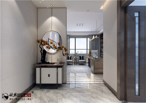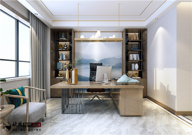 现代中式风格办公室装修装饰是从中式风格发展而来的,在本案办公室装修设计中一定程度上还遗留着中式风格的雅致气息,是一种怀古融今、开创未来的新风尚、新潮流,这也是时代发展现代气息浓郁中,中式风格办公室装修装饰等工装必然发生的转折点。在中式传统文化的渲染之下,给予办公环境以浓厚的艺术气息,增强空间的格调,富有空灵、禅意之美。同时将企业文化理念融入其中,并且能够在设计细节中体现企业创始人的品味喜好,从整体感官上体验企业创始人的审美情趣。在中式元素的装饰点缀之下,不仅给员工工作营造良好氛围,还能将客户与来宾中对企业的理解和感悟进一步加深。
